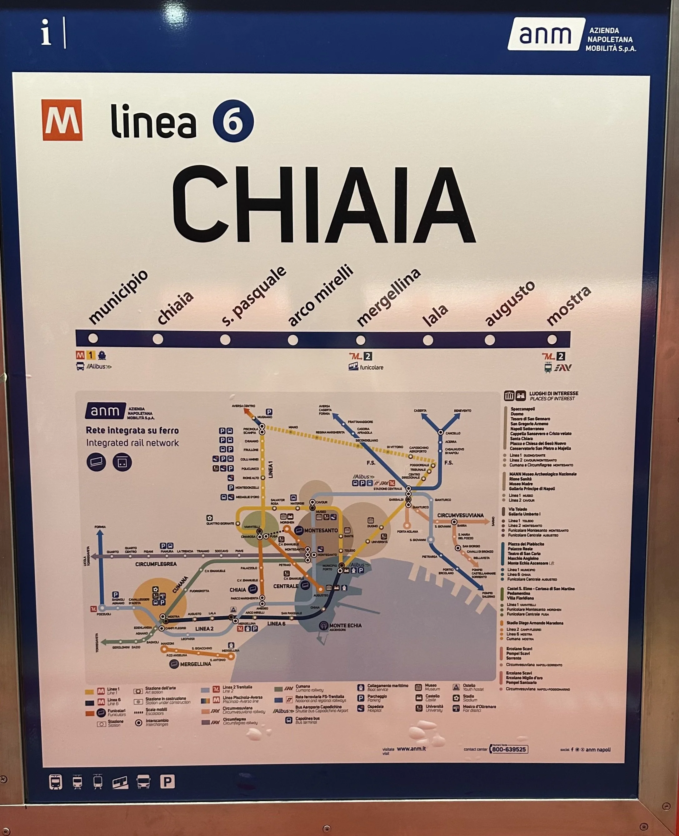 Linea 6 is the newest metro line, connecting Municipio, Chiaia, Mergellina and Mostra (Fuorigrotta area). At the moment, this line is operating only from 07.36 in the morning until 14.50 in the afternoon.